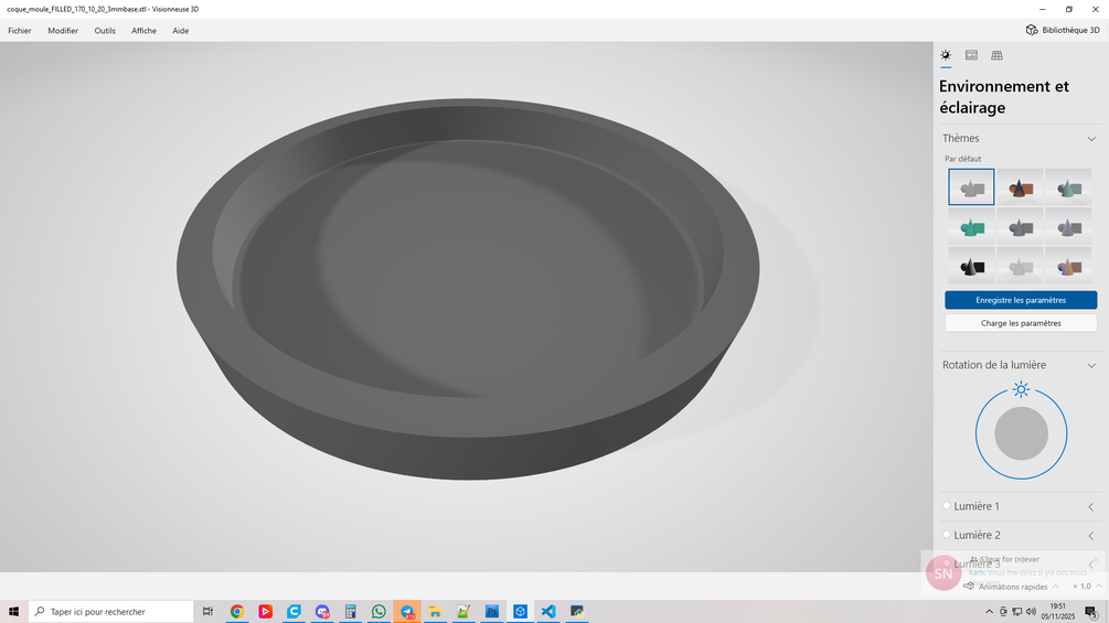 Charger n’importe quel fichier STL 3D représentant un master à mouler ;